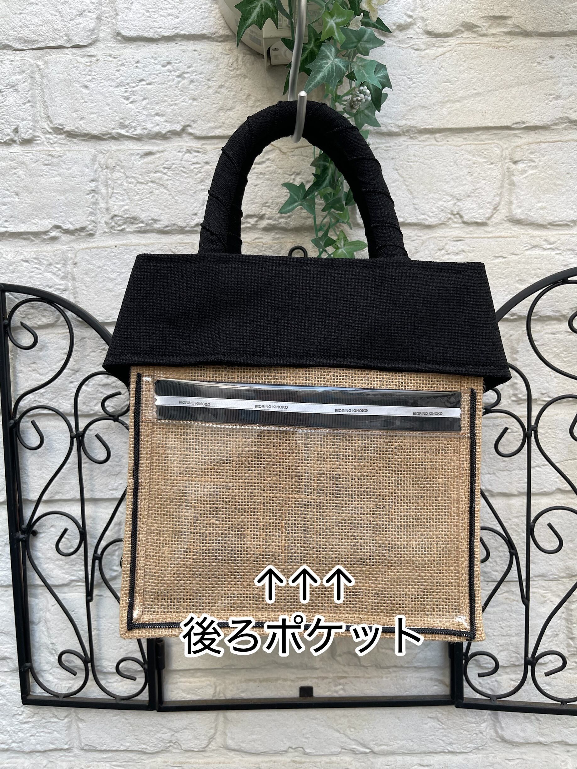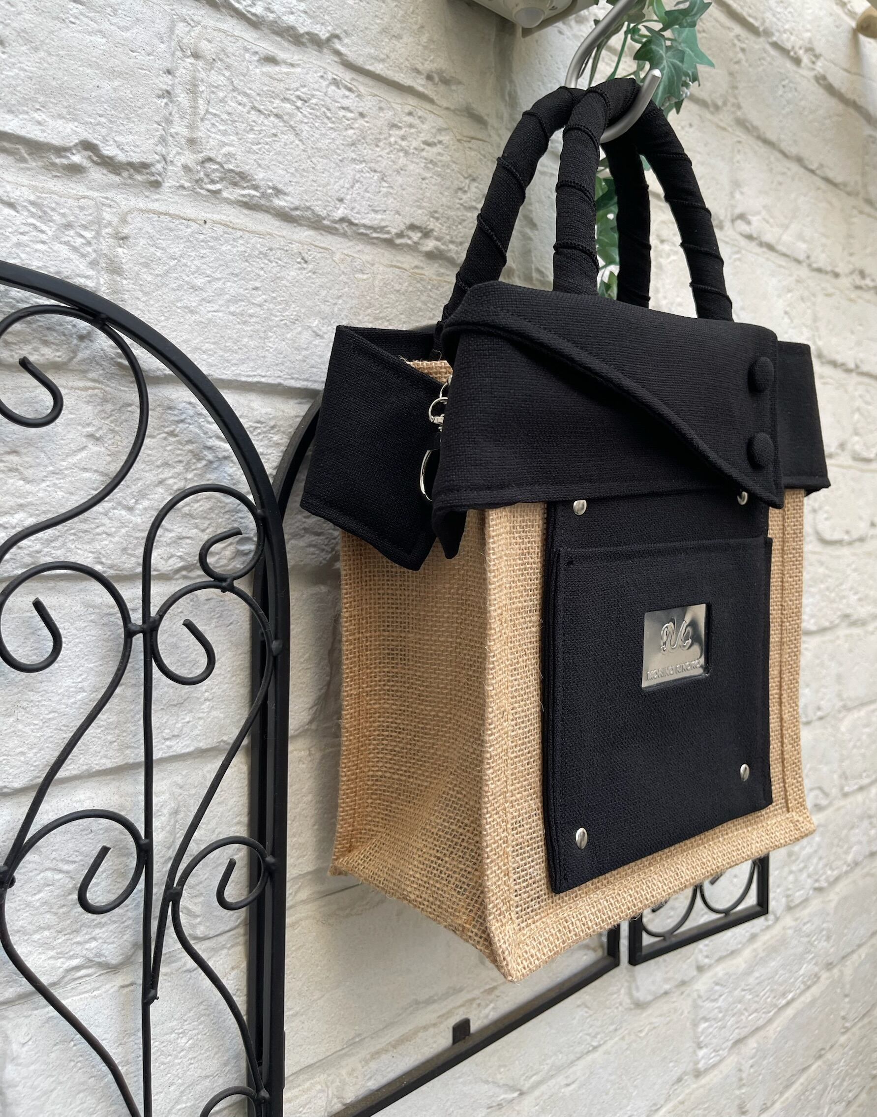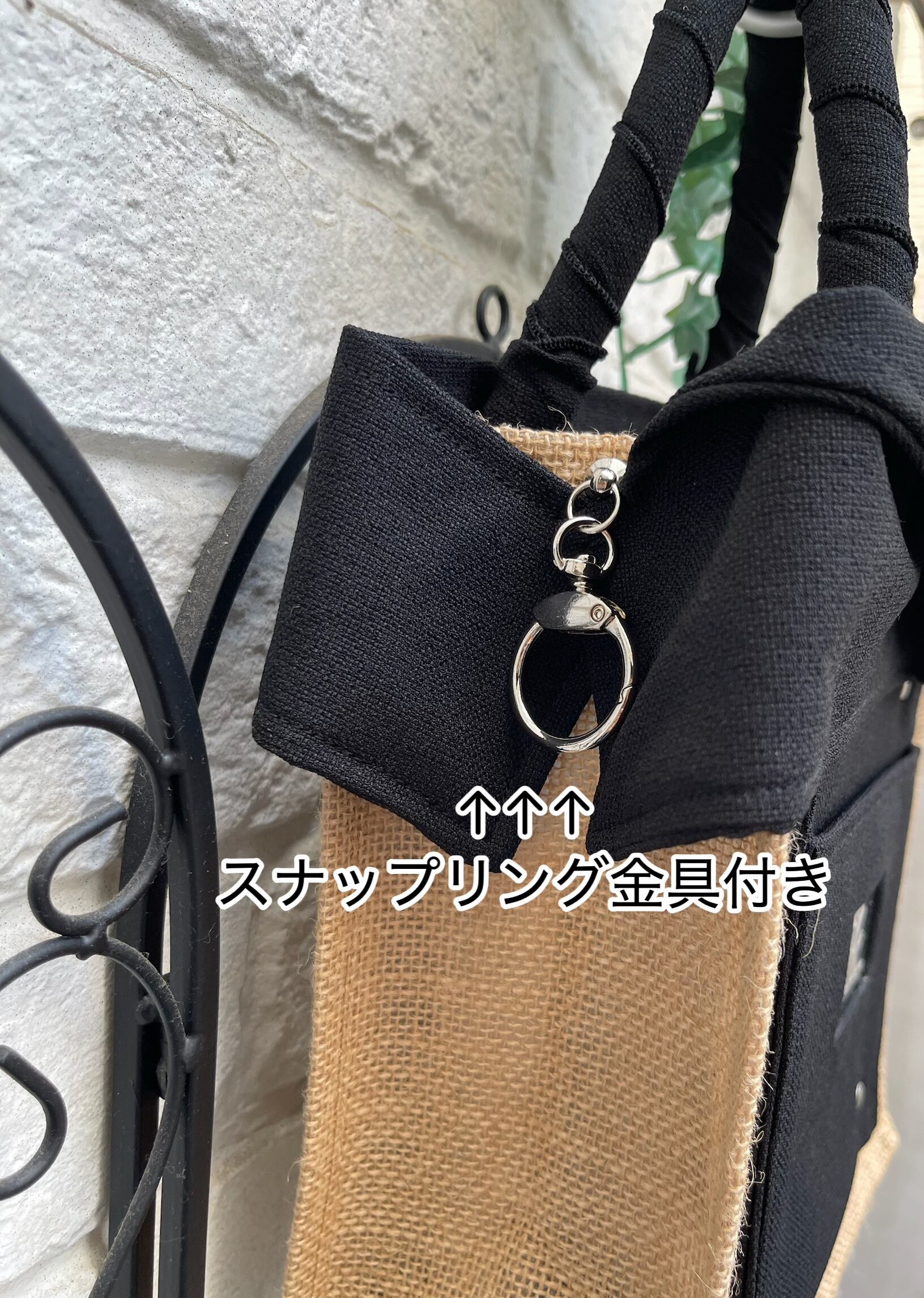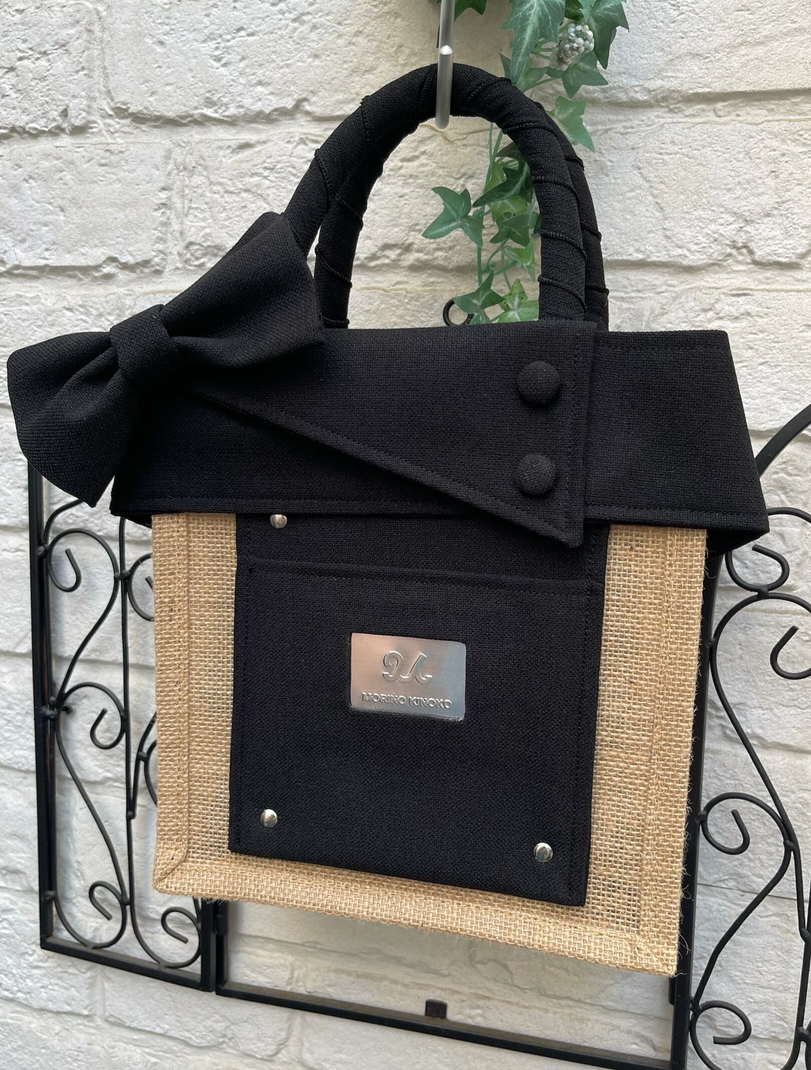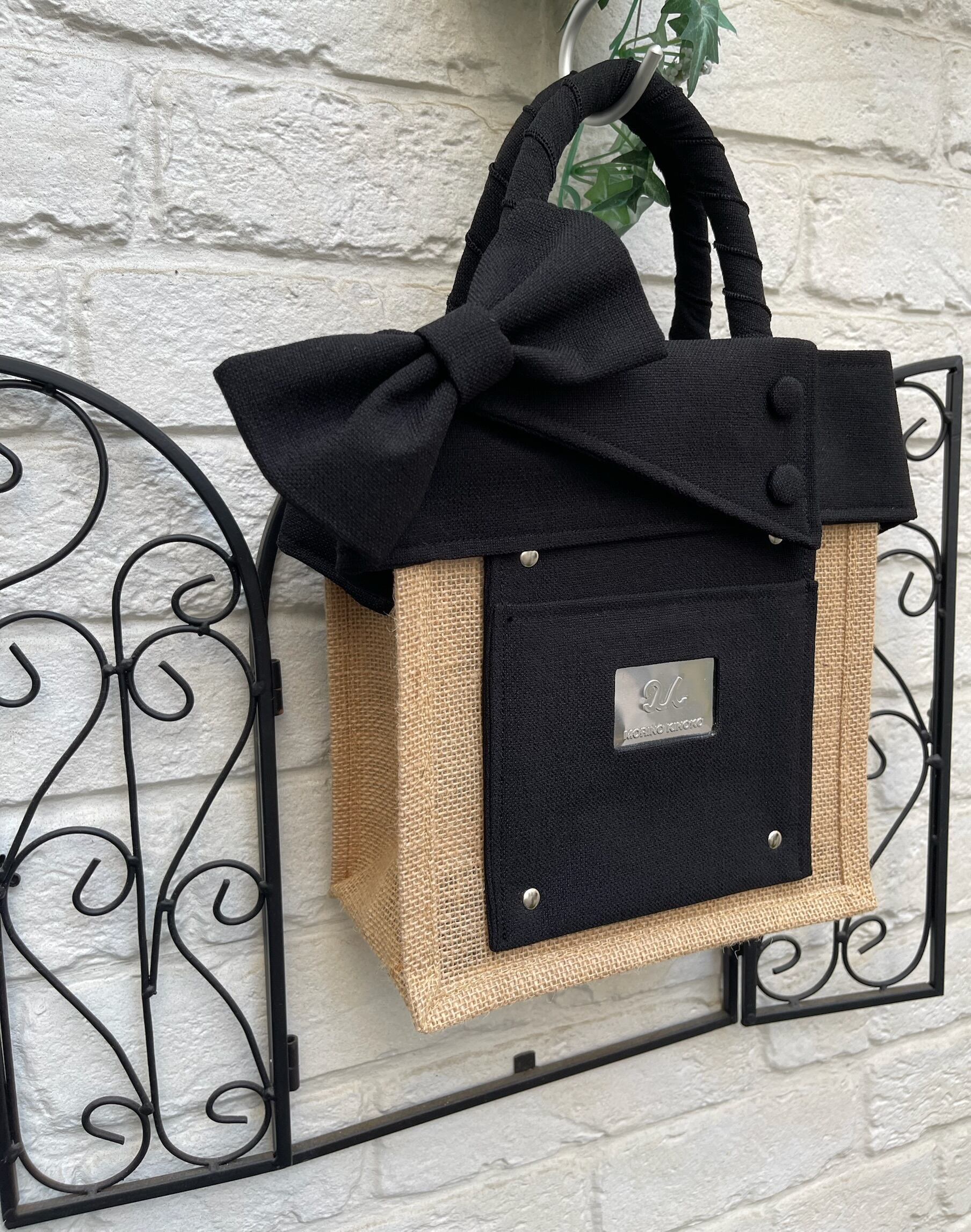 シックなブラックジャケットを纏ったような、クラシカルで個性的なジュートバッグ。