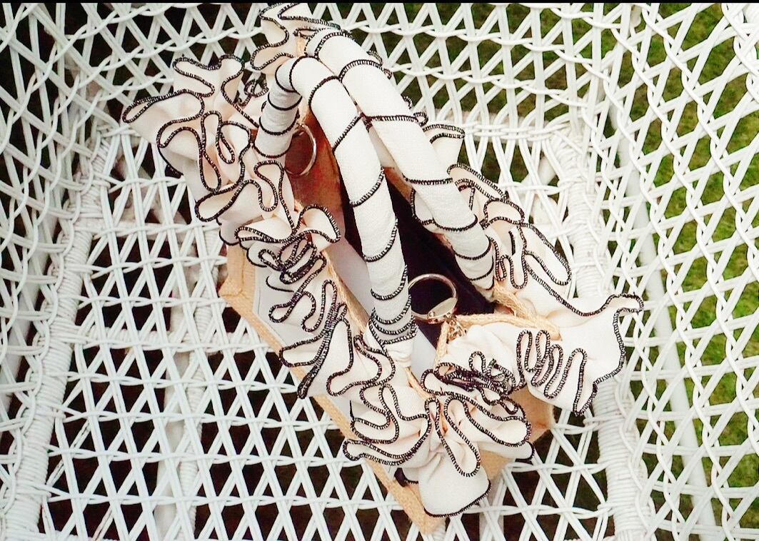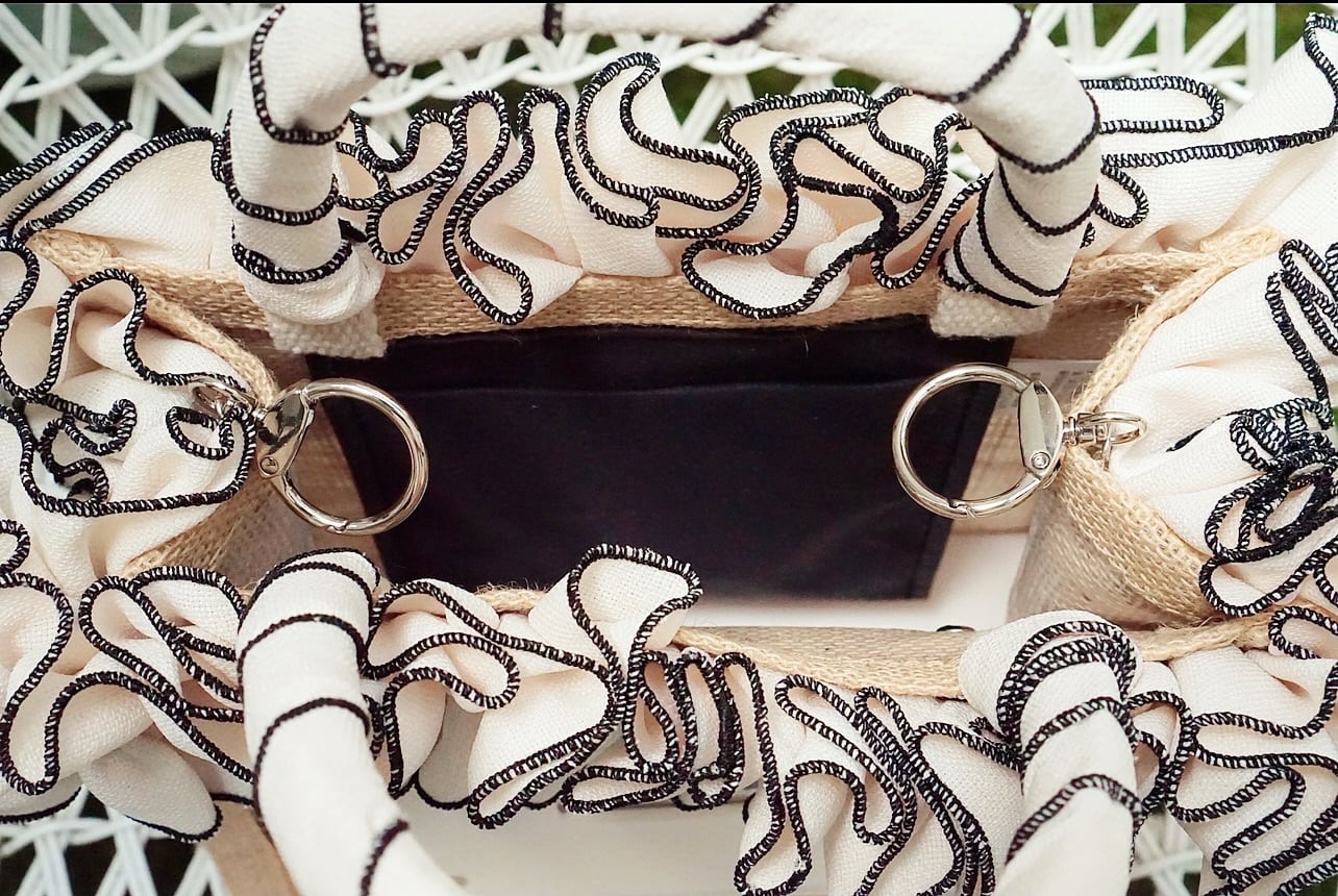 スワロフスキーがさりげなく光る、あたたかい質感のジュート。