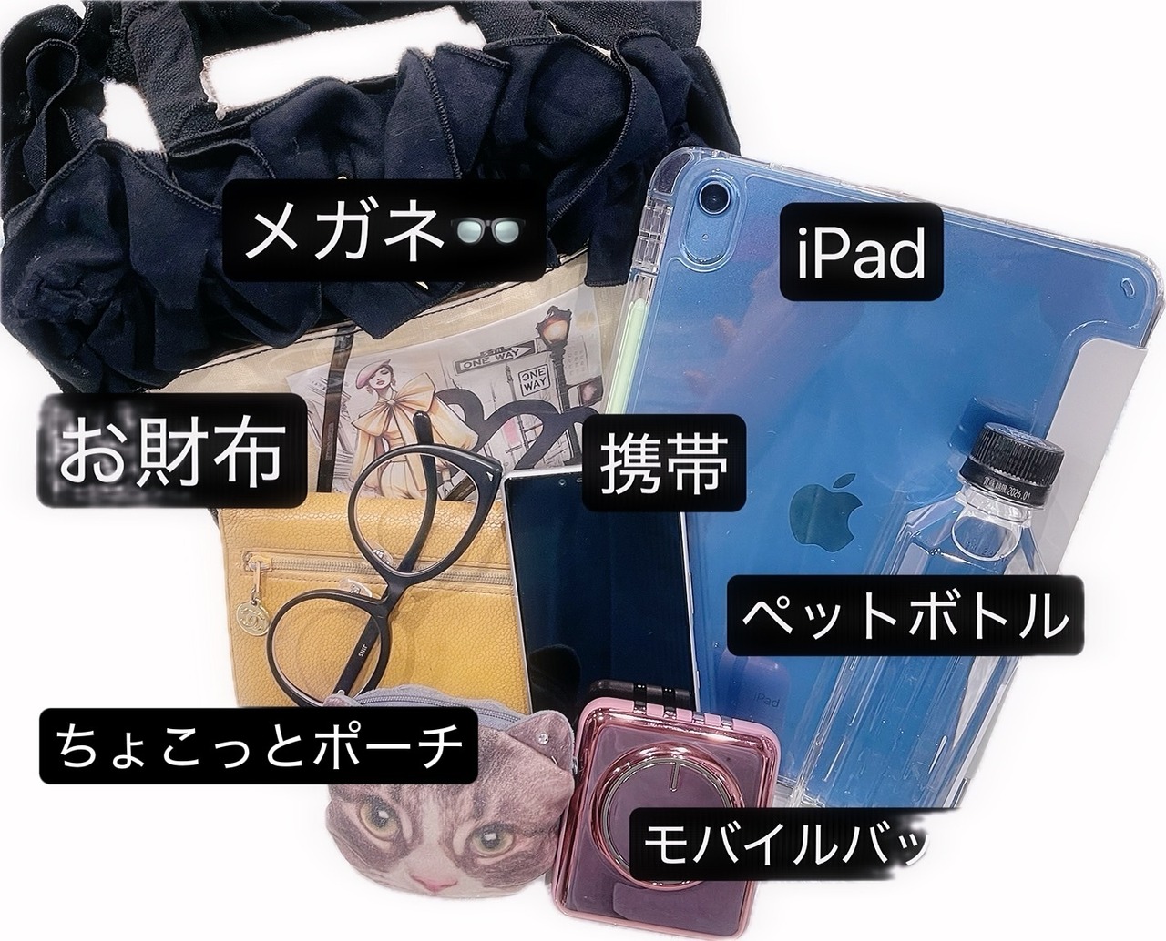 前ポケット・後ろポケット・内ポケット付きで、スマホ・ペットボトル・鍵・お財布・iPadもすっきり収まる収納力。