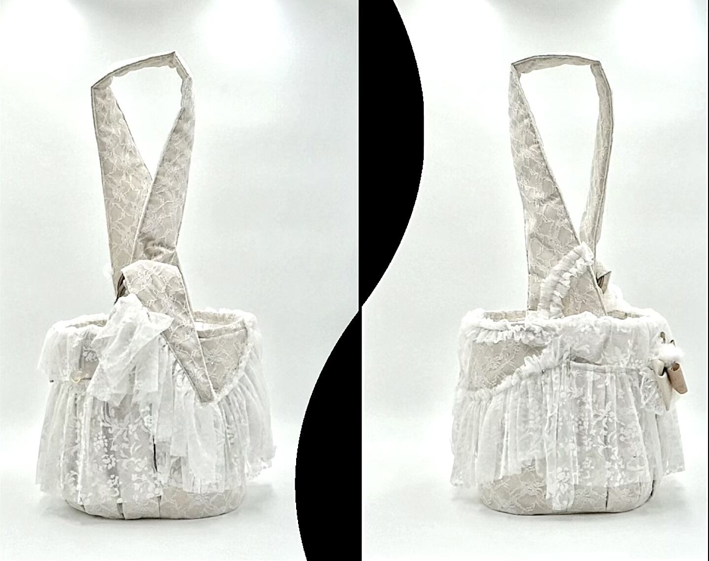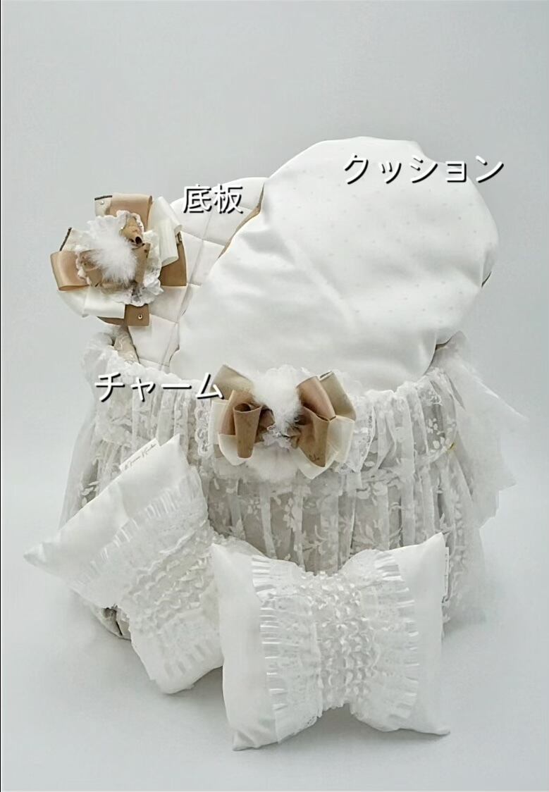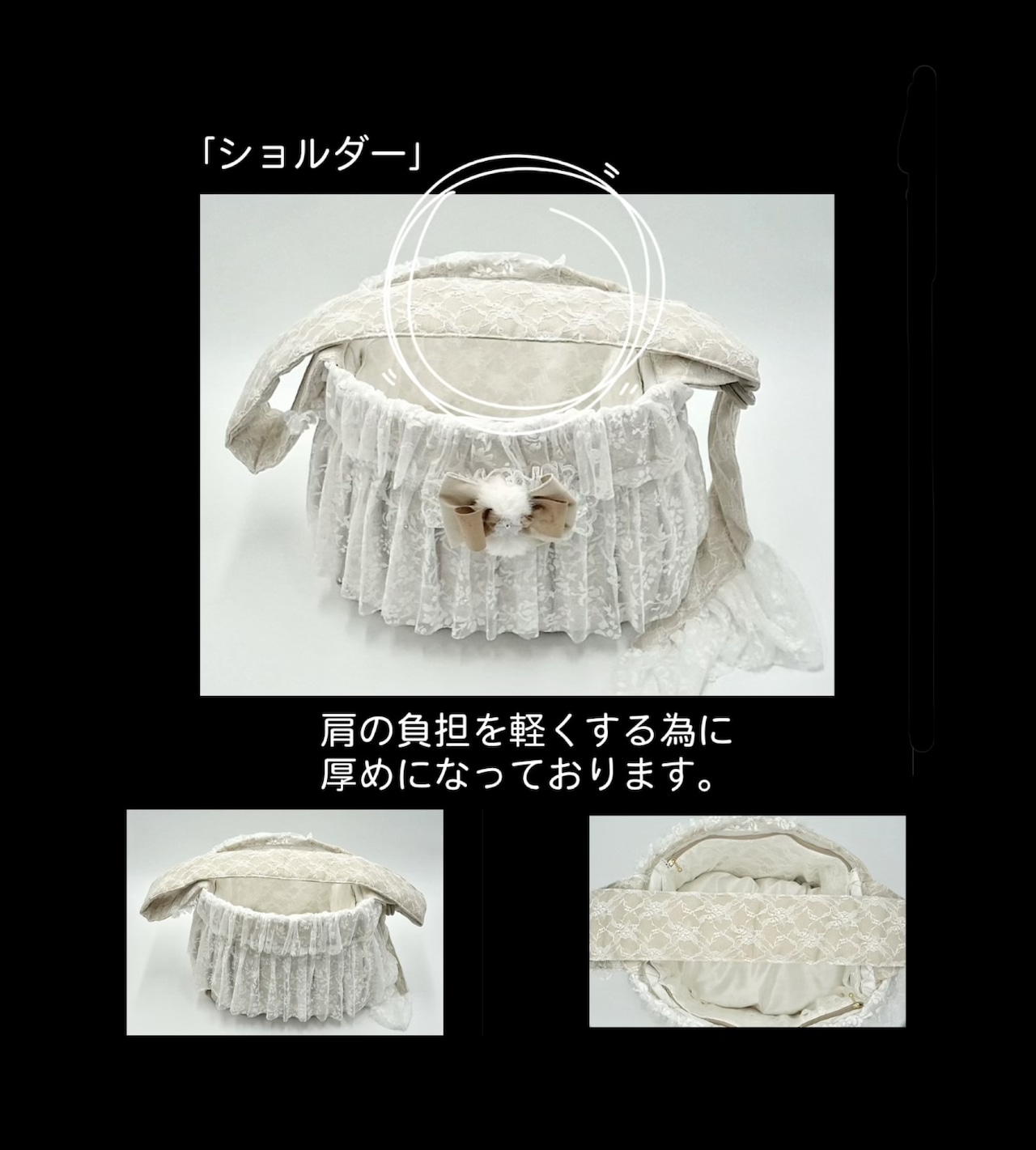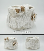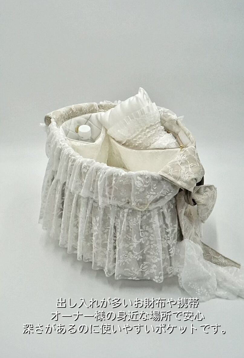 • レースに覆われたベージュの生地で、甘く柔らかい雰囲気