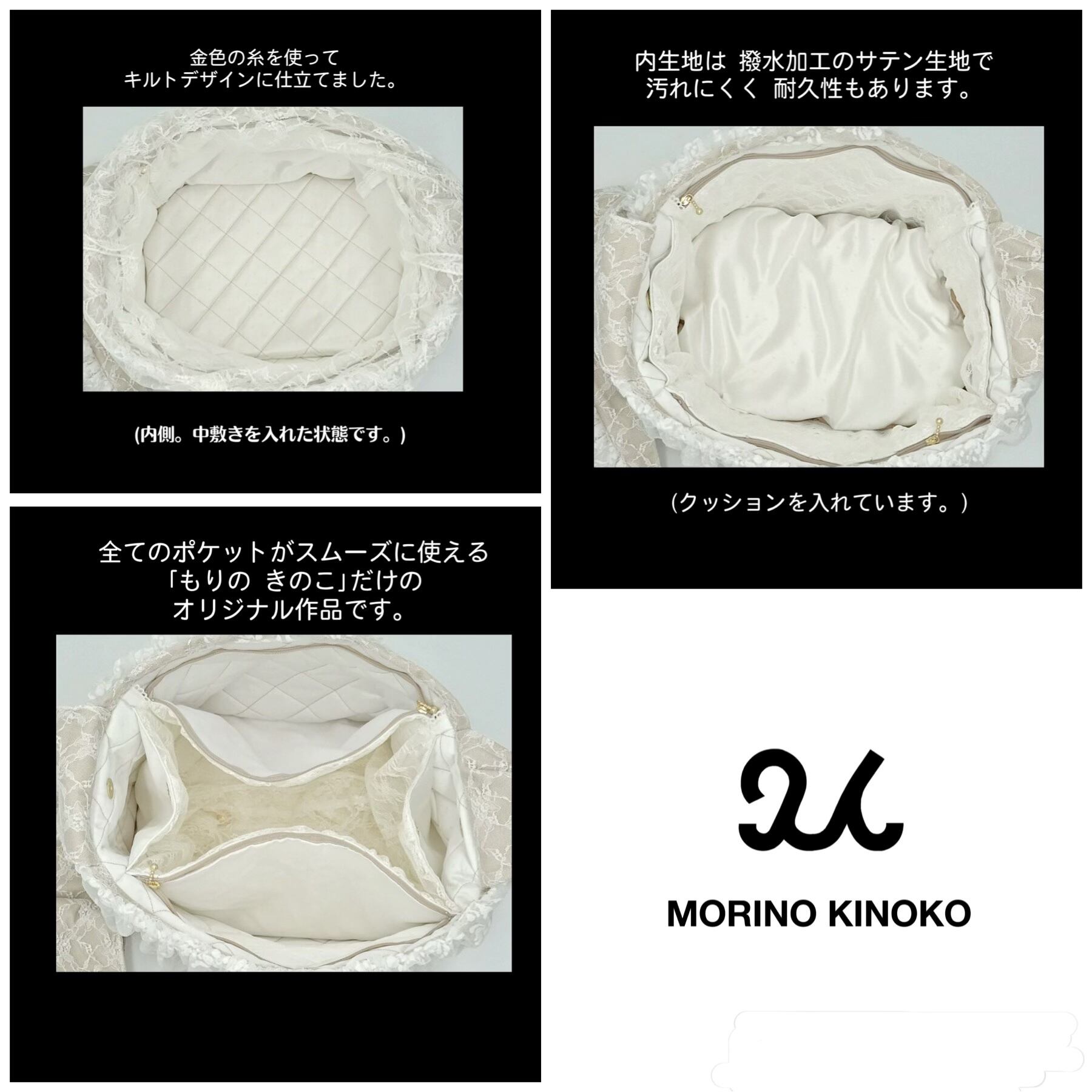 • 内側はゴールド糸でキルトデザインしたサンテ生地(超撥水加工)